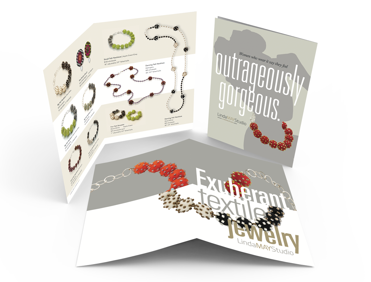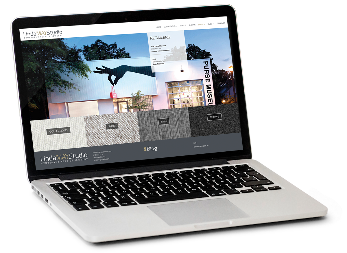 Linda May Studio is a brand new player in the hand made textile jewelry market. After seeing the images she provided, we wanted a site that stayed out of the way and that showed the range of colorful work produced by the artist. Linda wanted a site that was simple and elegant, but she also wanted something that would effectively position her as a serious contributor to the craft.